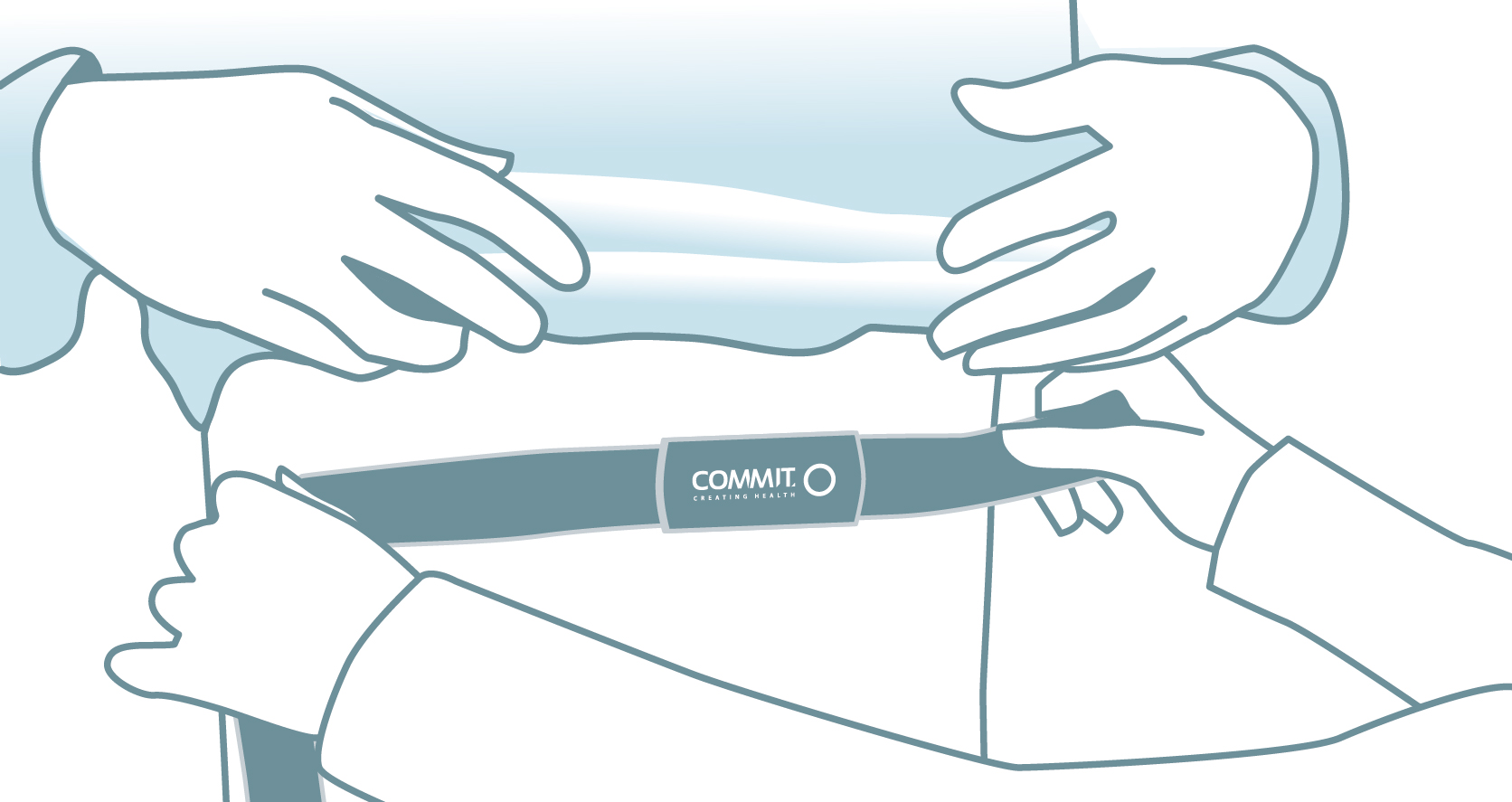 Dann wird der Brustgurt angelegt (bei Frauen unterhalb des BHs, Entkleiden nicht notwendig).